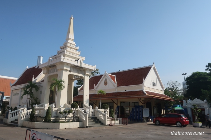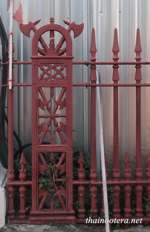 赤い鉄柵で囲まれたお寺へのアプローチ